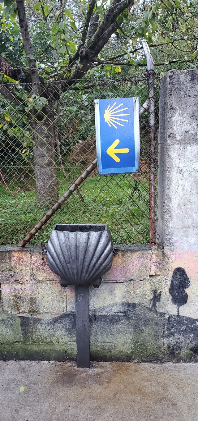 Sarria. This is where people who are only doing the 100 km start. Even the garbage pails are in the shape of shells!
