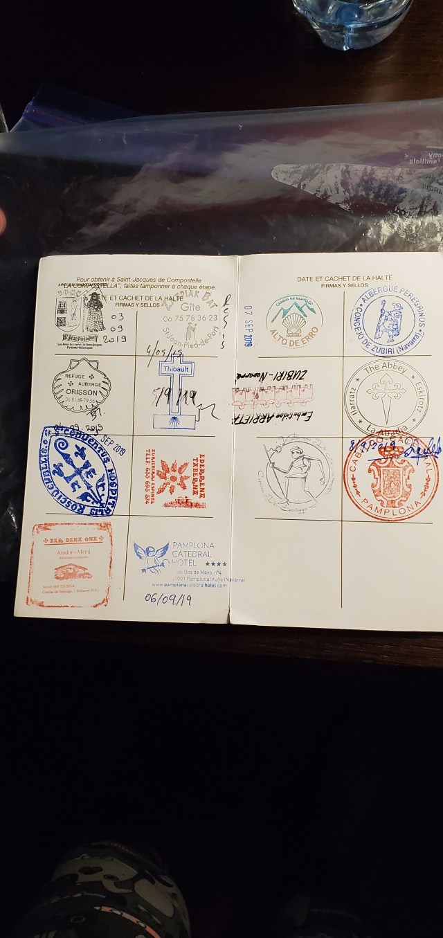 By now we have left all other pilgrims behind as they have stopped for the day but we must press on to Pamplona. A gentleman from Taiwan camped along the Camino offered us bread and tea in tiny china cups…real loose leaf tea, not the bagged stuff. He was worried about how much further we had to go. The Camino is not so much about the walk but the people you meet along the Way.