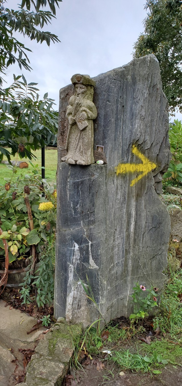 Portomarin. Can’t say I’ve seen a set of stairs in a traffic circle before. Old Roman gate moved when they surged the old town to make a reservoir.
